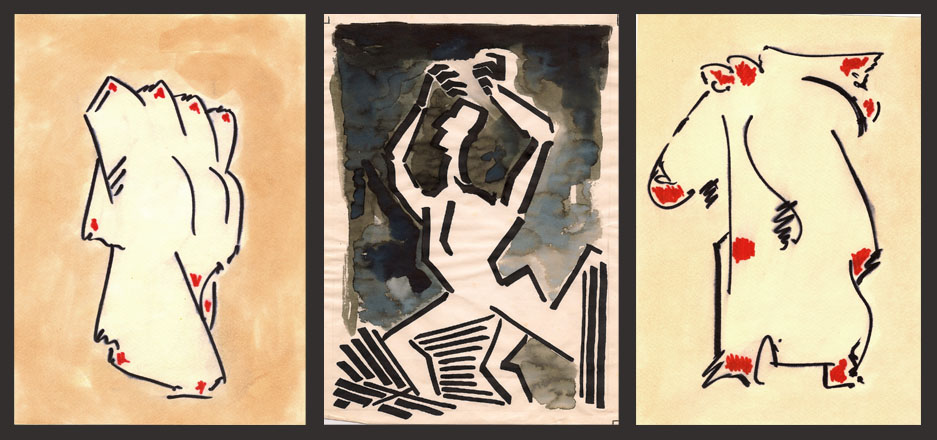 li + re: Zelko Wiener • MAX • 1982, ZW0123 | ZW0126, Aquarell u. Filzstift | Papier, 30 x 21 cm