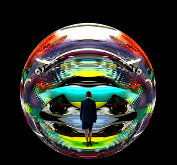 Zelko Wiener • MIND CINEMA. Das innere Kino • Ars Electronica 1990, ZW0021, Musik: Konrad Becker, Opto-akustische Komposition | Rauminstallation, li: Still, re: Ausschnitt